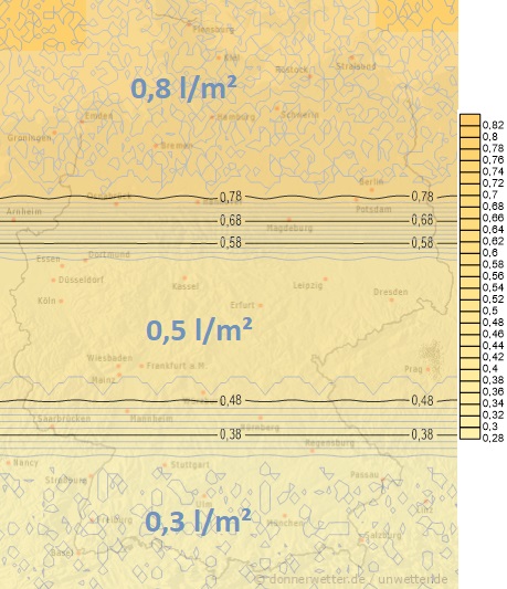Bis Mittwoch überqueren uns weitere Regen- und Schauerwolken. Dabei können täglich gebietsweise über 10 Liter Niederschlag pro Quadratmeter fallen.