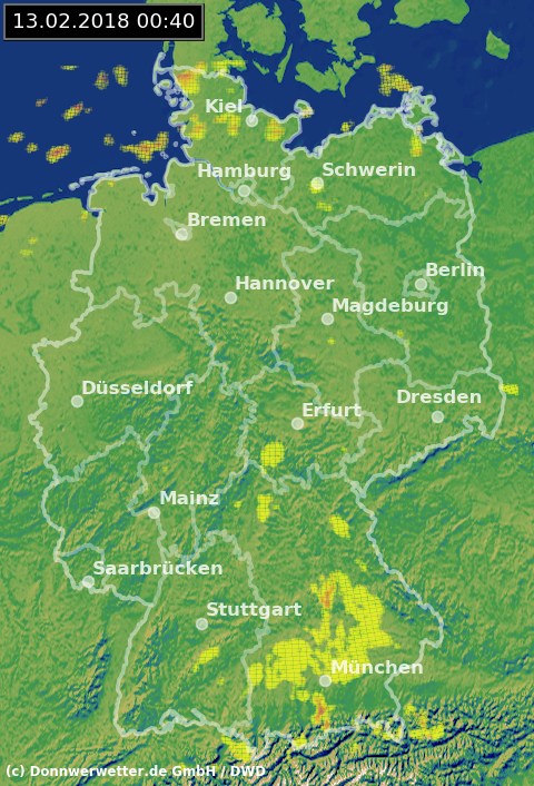 Radarbild von Dienstag, 13.02.2018 um 00.40 Uhr