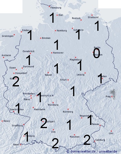 Benetzung von 1 bis 2 Stunden entsteht bei einzelnen Gewittergüssen im Südwesten, oder durch nächtlichen Strahlungstau.