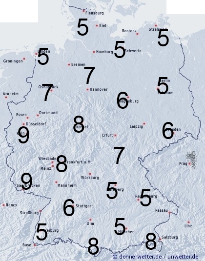Vor allem im Westen und in der Mitte kann es zeitweise noch regnen. Sonst entsteht Benetzung durch Feuchtigkeit, wie Tauansatz. Die Benetzungsdauer liegt in Deutschland allgemein zwischen 5 und 10 Stunden.