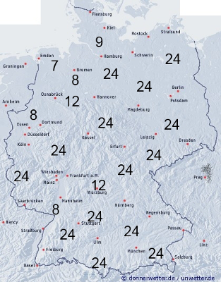 Wir stellen die Blattbenetzung generell in Stunden pro Tag auf der Karte dar. Durch die Lage des Feldes kann die Benetzungsdauer allerdings variieren.