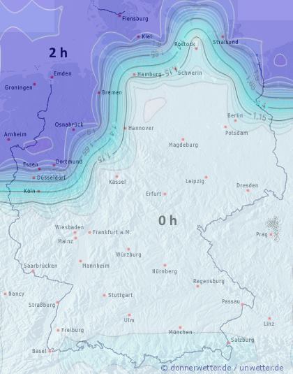 Wir stellen die Blattbenetzung generell in Stunden pro Tag auf der Karte dar. Durch die Lage des Feldes kann die Benetzungsdauer allerdings variieren.