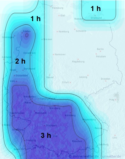 Wir stellen die Blattbenetzung generell in Stunden pro Tag auf der Karte dar. Durch die Lage des Feldes kann die Benetzungsdauer allerdings variieren.