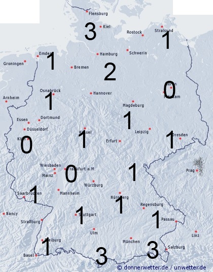 Ganz im Norden Benetzung durch örtliche Schauer und Gewitter