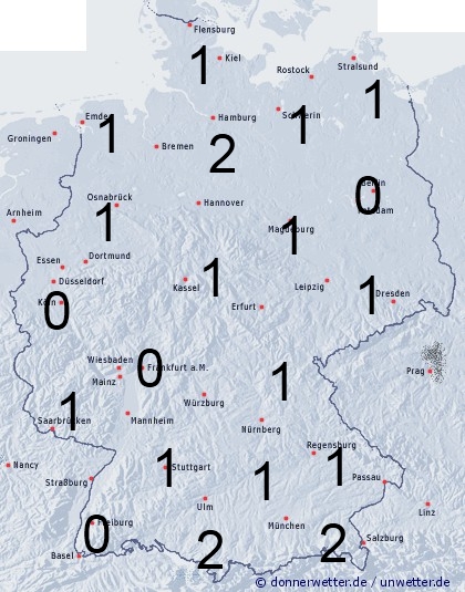 Leichte Benetzung entsteht nur durch einzelne Schauer im Norden, oder nächtlichen Strahlungstau. Sonst bleibt es trocken und ziemlich warm.