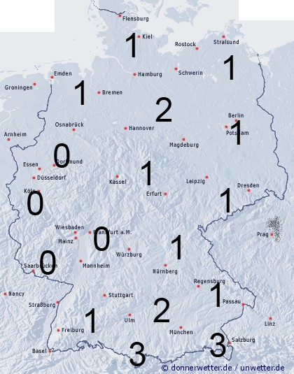 Die Benetzungsdauer ist wegen der trockenen Wetterlage meist nur gering und liegt in ganz Deutschland zwischen 0 und 3 Stunden. Leichte Benetzung entsteht nur durch nächtlichen Strahlungstau oder Reif.