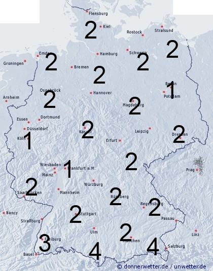 Ein meist freundlicher Sommertag. Leichte Benetzung entsteht nur durch nächtlichen Strahlungstau. Am Abend können außerdem im Südschwarzwald und Oberschwaben einzelne Gewitter für eine Benetzungszeit von 2 bis 4 Stunden sorgen.