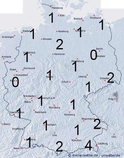 In der Lausitz, sowie im Chiemgau kann noch etwas Regen fallen, oder einzelne Schauer auftreten. Hier erreicht die Benetzungszeit jeweils zwischen 2 und 4 Stunden. Im großen Rest bleibt es überwiegend trocken. Leichte Benetzung entsteht nur durch nächtlichen Strahlungstau.