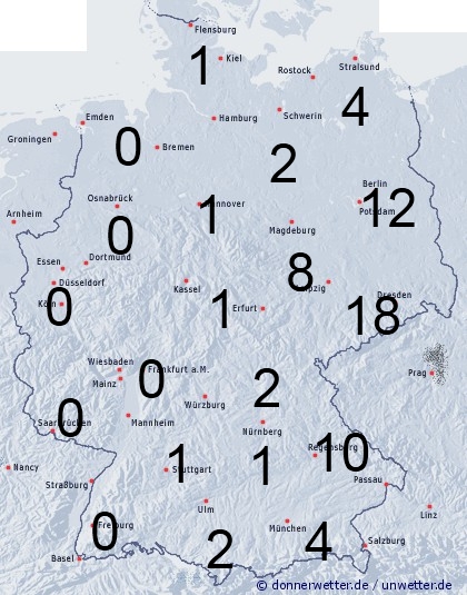 Im Osten kommt es zur Benetzung durch Regen. Vor allem am Erzgebirge stauen sich die Wolken und es regnet längere Zeit. Daher ist hier die Benetzungsdauer mit bis zu 18 Stunden am größten. Richtung Westen wird es immer trockener und daher nimmt die Benetzung rasch ab. Lediglich durch nächtlichen Strahlungstau, beziehungsweise Reif entsteht teilweise leichte Benetzung.
