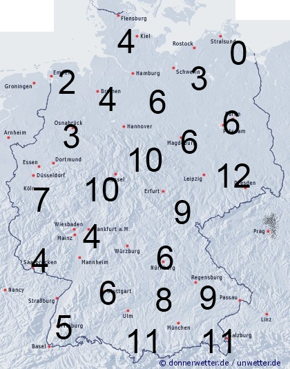 Bei auftretendem Regen oder Schauern gibt es in Deutschland recht unterschiedliche Benetzungszeiten. Die Benetzungsdauer erreicht etwa 3 bis 12 Stunden. Im äußersten Nordosten bleibt es meistens trocken. Auch im Emdener Land sind Regenschauer eher selten. Daher gibt es hier kaum Benetzung.