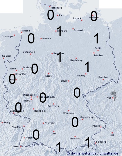 Die Benetzungsdauer ist allgemein sehr niedrig. Nur durch nächtlichen Strahlungstau oder örtlich etwas Regen könnte leichte Benetzung entstehen.