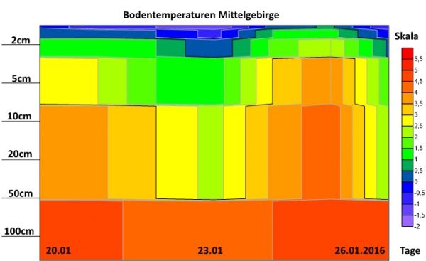 Bodentemperatruen vom 20.01.2016 bis zum 26.01.2016 für das Mittelgebirge.
