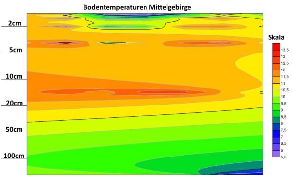 Bodentemperatruen vom 24.05.2016 bis zum 31.05.2016, für das Mittelgebirge.