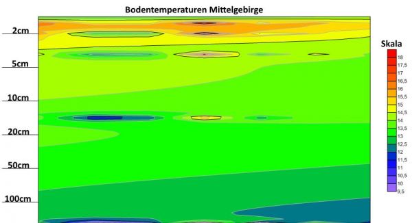 Bodentemperatruen vom 27.09.2016 bis zum 04.10.2016, für das Mittelgebirge.