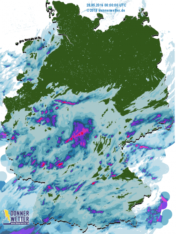 Südlich der Mittelgebirge gab es gestern fast überall etwas Regen. Lokal gab es Starkregen und Hagel. Der Norden blieb meist trocken, besonders der Nordosten. Heute wird sich dies ändern und überall schauert es am Nachmittag heftig.