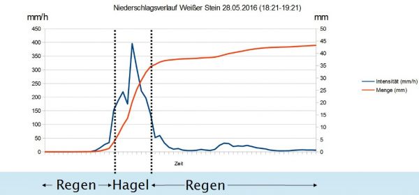Am vergangenen Wochenende sind heftige Unwetter zunächst über die Alpen und später über weite Teile Deutschlands gezogen. Lokal kamen dabei in kurzer Zeit teilweise mehr als 50 Millimeter Niederschlag pro Quadratmeter zusammen. Vielerorts mischte sich auch Hagel unter den Starkregen.