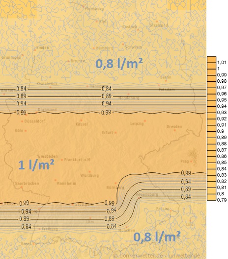 Heute zieht letzter Niederschlag nach Osten ab, von Westen zieht im Tagesverlauf aber neuer Regen auf. Die Mengen liegen jedoch unter 10 Liter pro Quadratmeter.