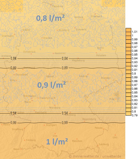 Tatsächliche Verdunstung in Liter pro m²