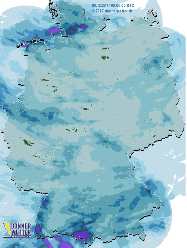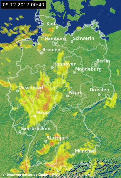 Das Radarbild zeigt aktuell vor allem über NRW und Hessen teils stärkere Signale. Hier gibt es teilweise kräftigen Schneefall. Es muss mit akuter Straßenglätte gerechnet werden. Auch in anderen Bereichen des Landes muss mit Schneeschauern gerechnet werden. Sonst ist der Himmel über Deutschland teils wolkenverhangen, teils aufgeklart.