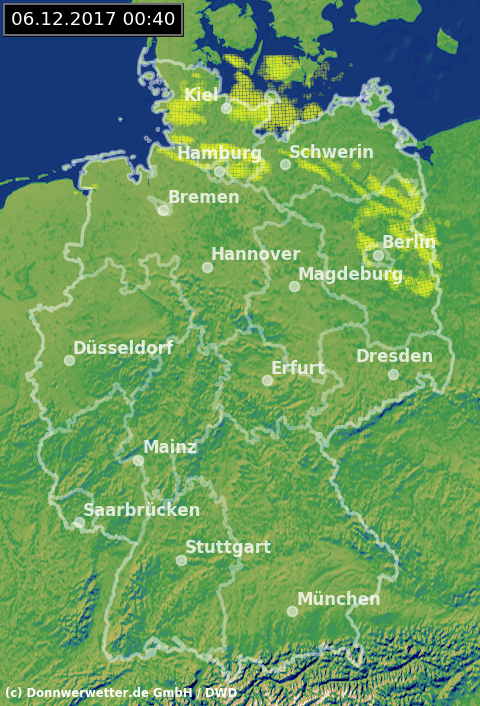 Heute fällt im Nordosten, sowie über den Mittelgebirgen etwas Regen oder Sprühregen. Die Mengen liegen jedoch meist unter 3 Liter pro Quadratmeter.