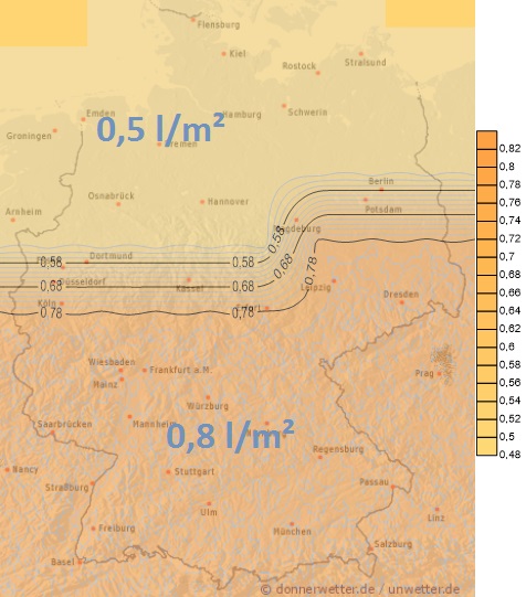 Ab Dienstag ziehen jedoch wieder neue teils kräftige Regenfälle, oder Schauer mit örtlichen Gewittern über Deutschland hinweg.