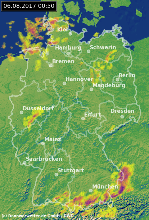 Radarbild von Sonntag, 06.08.2017 um 00.50 Uhr