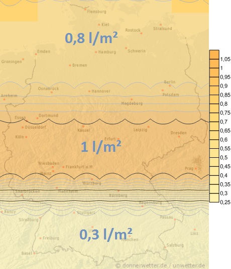 Am Mittwoch und Donnerstag fällt gebietsweise Regen, dabei werden jedoch kaum mehr als 5 Liter pro Quadratmeter fallen.