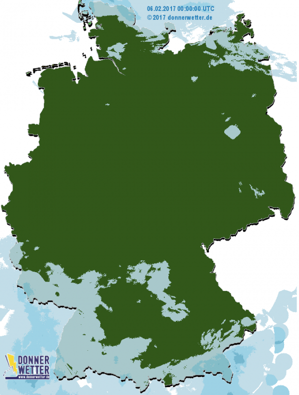 Nur an den Alpen und an der Ostsee gab es noch nennenswerten Schnee und Regen. Sonst blieb es trocken. In der kalten Luft ist kaum neuer Schnee und Regen zu erwarten. Nur zwischen Eifel und Schwarzwald regnet es anfangs noch etwas.