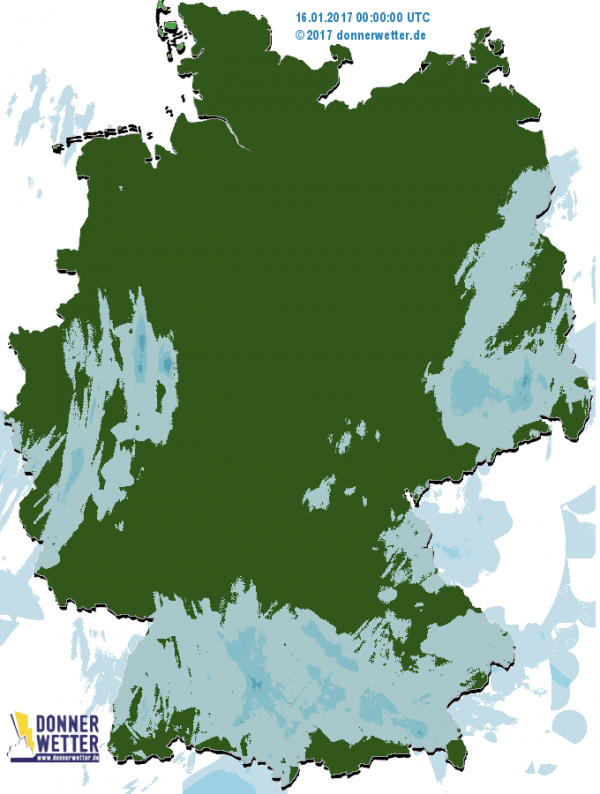 An den Mittelgebirgen und in Bayern gab es noch etwas Schnee. Die Mengen war gestern mit 1-2 l/m2 eher gering. Auch heute flockt es noch ein wenig. Die Mengen sind mit 0,1 bis 0,5 l/m2 noch geringer.