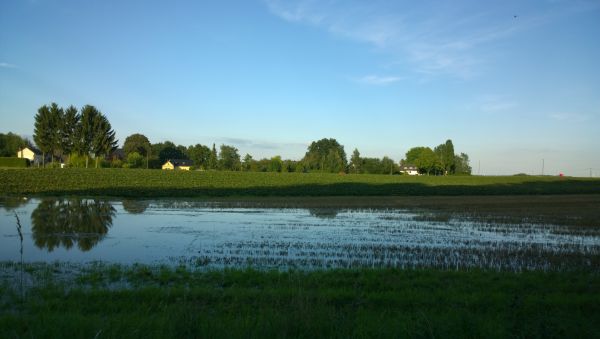 Trotz des guten Wetters steht auf vielen Felder der Republik noch immer Wasser, wie auf diesem Feld bei Bonn.