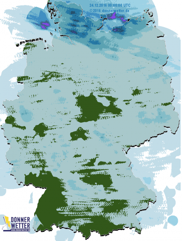 Im Norden Deutschlands regnete es gestern am meisten. Der Süden war ebenfalls von Regen betroffen, dennoch nicht so stark wie im Norden. Ein paar einzelne Teile im Süden wurden verschohnt und blieben trocken.