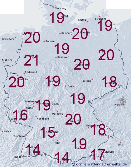 Die Temperaturen im Erdboden betragen meist zwischen 18 und 21 Grad. Kühler ist der Boden momentan im Südwesten, in den Mittelgebirgen und an den Alpen. Hier liegen die Temperaturen bei 12 bis 17 Grad.