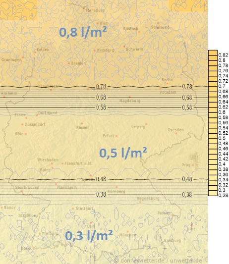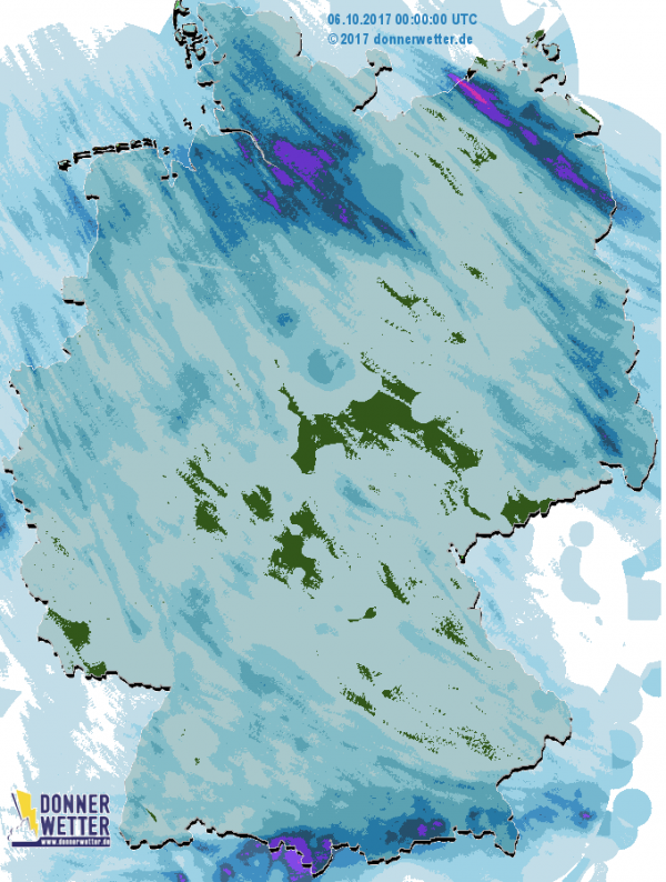 Von Samstag auf Sonntag zieht mit auffrischendem Wind ein neues Regengebiet von Nordwesten über Deutschland hinweg. Dabei können verbreitet wieder zwischen 10 und 20 Liter Regen pro Quadratmeter fallen, örtlich auch mehr.