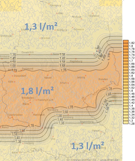 Am Donnerstag zieht im Nordwesten und Norden neuer Landregen mit Mengen zwischen 2 und 7 Liter pro Quadratmeter auf. Sonst sind Schauer eher selten