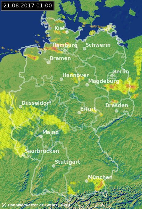 Heute können von Schleswig-Holstein, über Mecklenburg-Vorpommern bis Brandenburg noch örtliche Schauer nieder gehen. Die Niederschlagsmengen liegen dabei meistens unter 10 Liter pro Quadratmeter. Im übrigen Land bleibt es insgesamt freundlich und trocken.