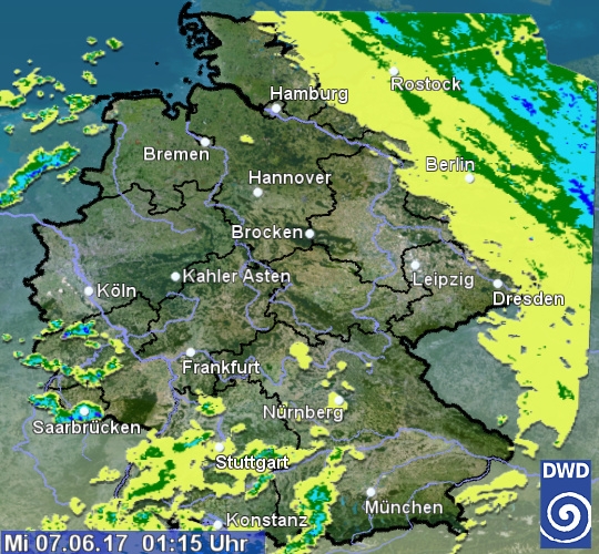 Radarbild von Mittwoch, 07.06.2017 um 01.15 Uhr