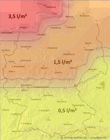 Das Frederike zieht weiterhin seine Kreise über Deutschland. Es gab wieder Schauer- und Gewitterstraßen mit über 50 l/m2. Auch heute wird es wieder lokal sehr nass.