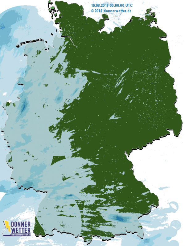 In der Nacht überqueren die Ausläufer das Land weiter ostwärts. Währenddessen ziehen von Südwesten her bereits neue Schauer auf.