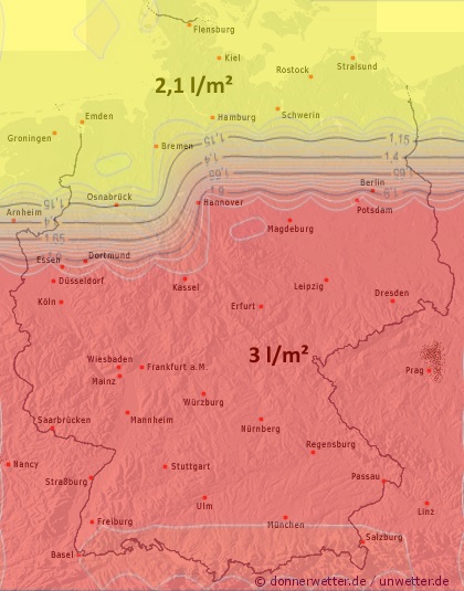 In der Nordhälfte blieb es hingegen auch mancherorts, vor allem in weiten Teilen Brandenburgs und Berlins, komplett trocken. Wohingegen in Ostfriesland ebenfalls teils kräftige Schauer niedergingen.
