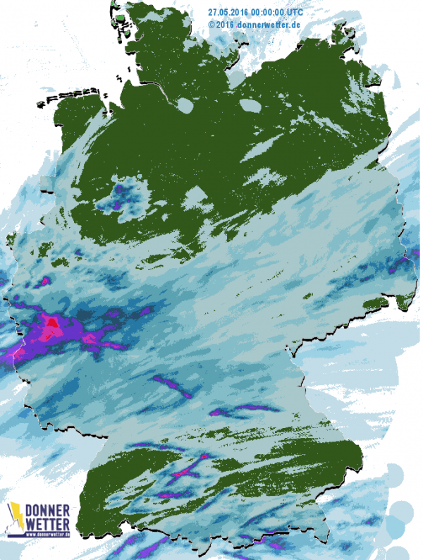 Lediglich nördlich einer Linie Münster-Berlin und in kleinen Teilen Baden-Württembergs und Bayerns blieb es trocken.