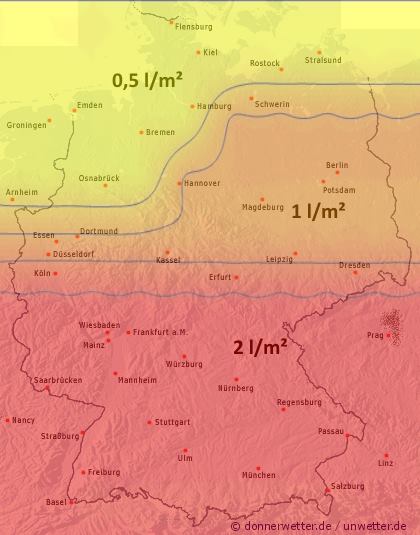 Das ändert sich jedoch heute. Im Tagesverlauf erreicht eine Warmfront den Nordwesten des Landes. In der Nordhälfte sind daher ein paar Regentropfen durchaus möglich.