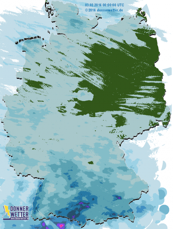 Im ganzen Land gab es Schauer, nur in Berlin/Brandenburg war es fast durchweg trocken. An den Alpen gab es länger Schnee und Regen.