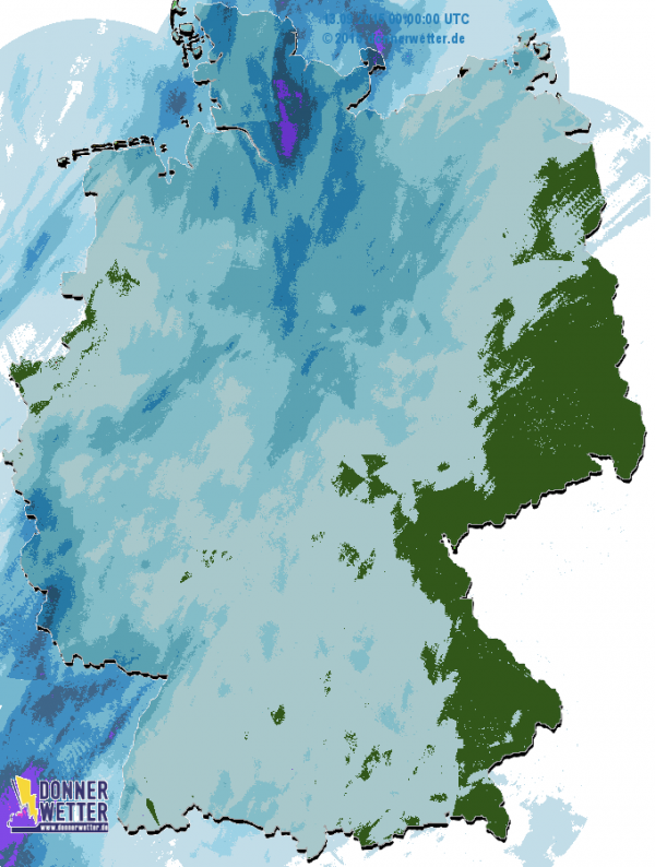 Am Sonntag regnete es immer wieder im ganzen Land. Nur in Bayern und an der Oder war es trocken. Aktuell regnet es immer wieder in Deutschland.
