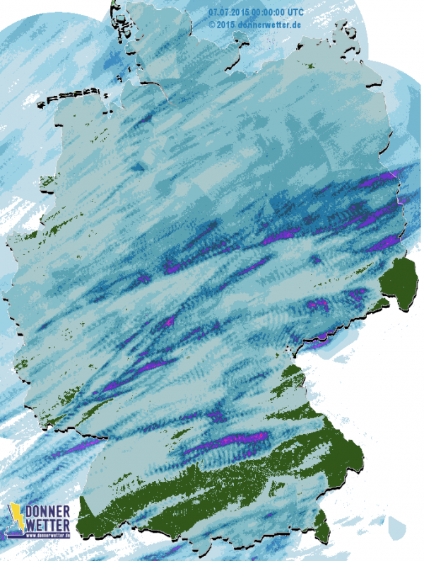 Komplett trocken durch den gestrigen Tag kamen wohl nur die wenigsten. Weitgehend vor Regen und Gewittern verschont blieb man am Dienstag meist nur entlang der Donau, im äußersten Südosten sowie im Berechtesgadener Land.
