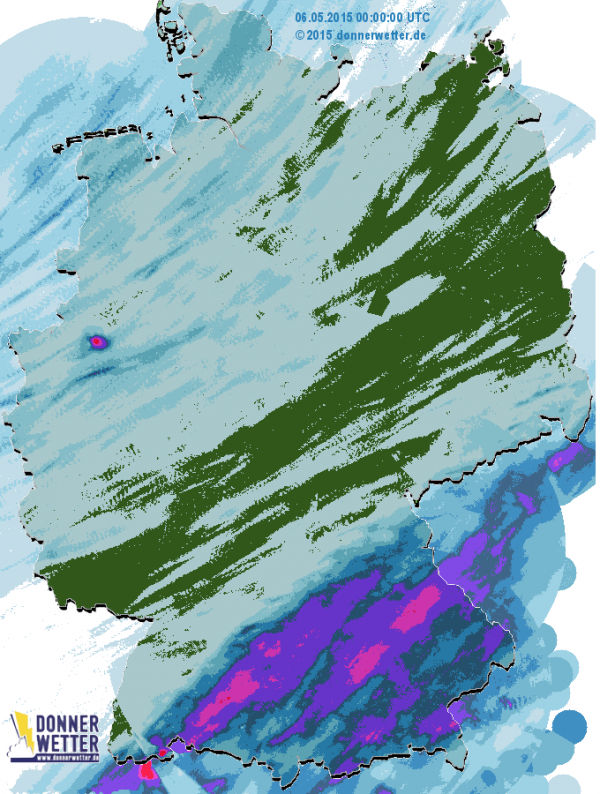 Eine nasse Wochenmitte gab es gestern insbesondere in den südlichen Bundesländern. Hohe Niederschlagsmengen waren so etwa auf der Schwäbischen Alb sowie im Altmühltal und in Teilen Oberbayerns zu verzeichnen.