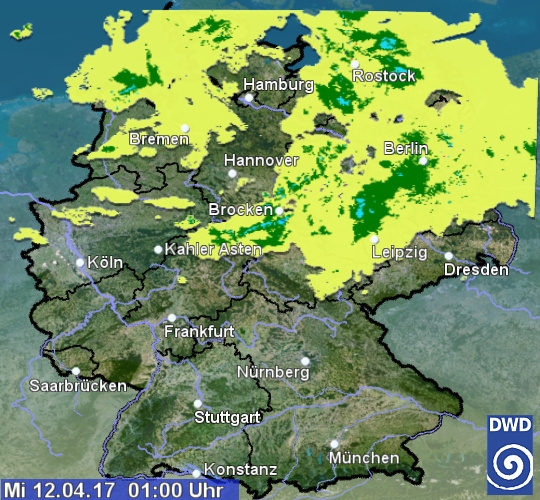 Radarbild von Mittwoch, 12.04.2017 um 01.00 Uhr