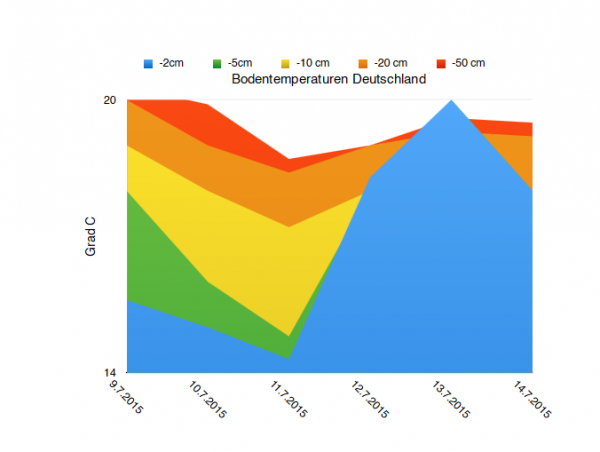 Entwicklung der Bodentemperaturen zwischen dem 09.07. und dem 14.07.2015.