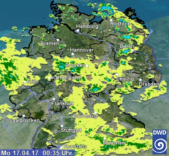Radarbild von Ostermontag, 17.04.2017 um 00.35 Uhr