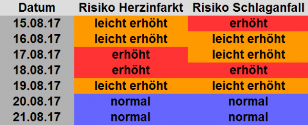 Die Schlaganfall- und Herzinfarktrisiken bis zum 21.08.2017