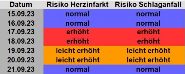 Unser aktuelles Herz-Kreislauf-Wetter bis zum 21.09.2023.